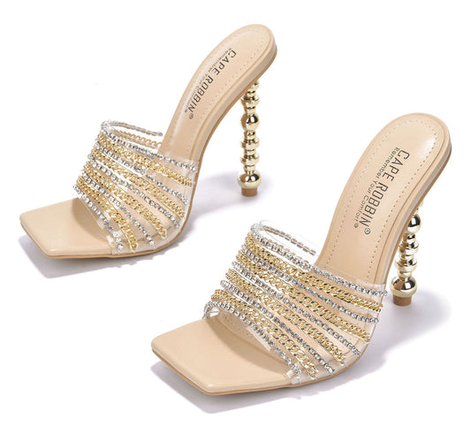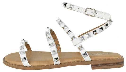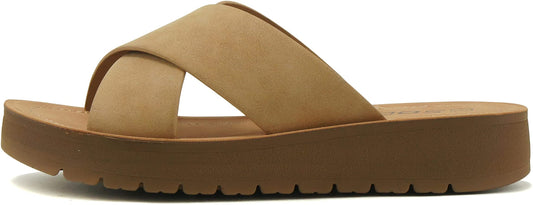 Classified Women Flat Sandals Ankle Strap Thongs Cut out Beige Nude TAKEME 7.5