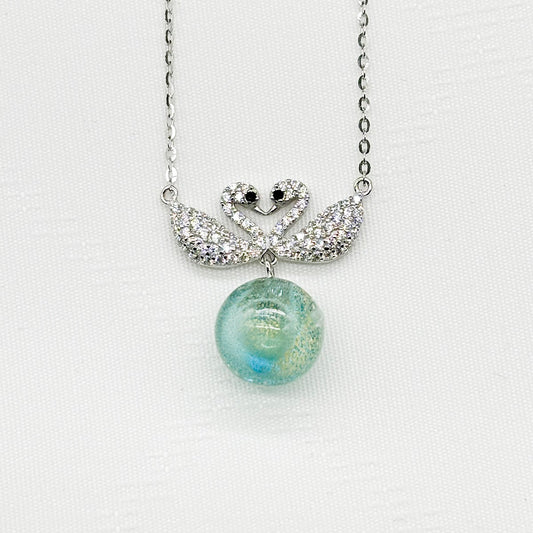 Sterling Silver Twin Swan Aroma Necklace - Aqua | Energy & Healing | Diffuse on the go | Perfect Gift