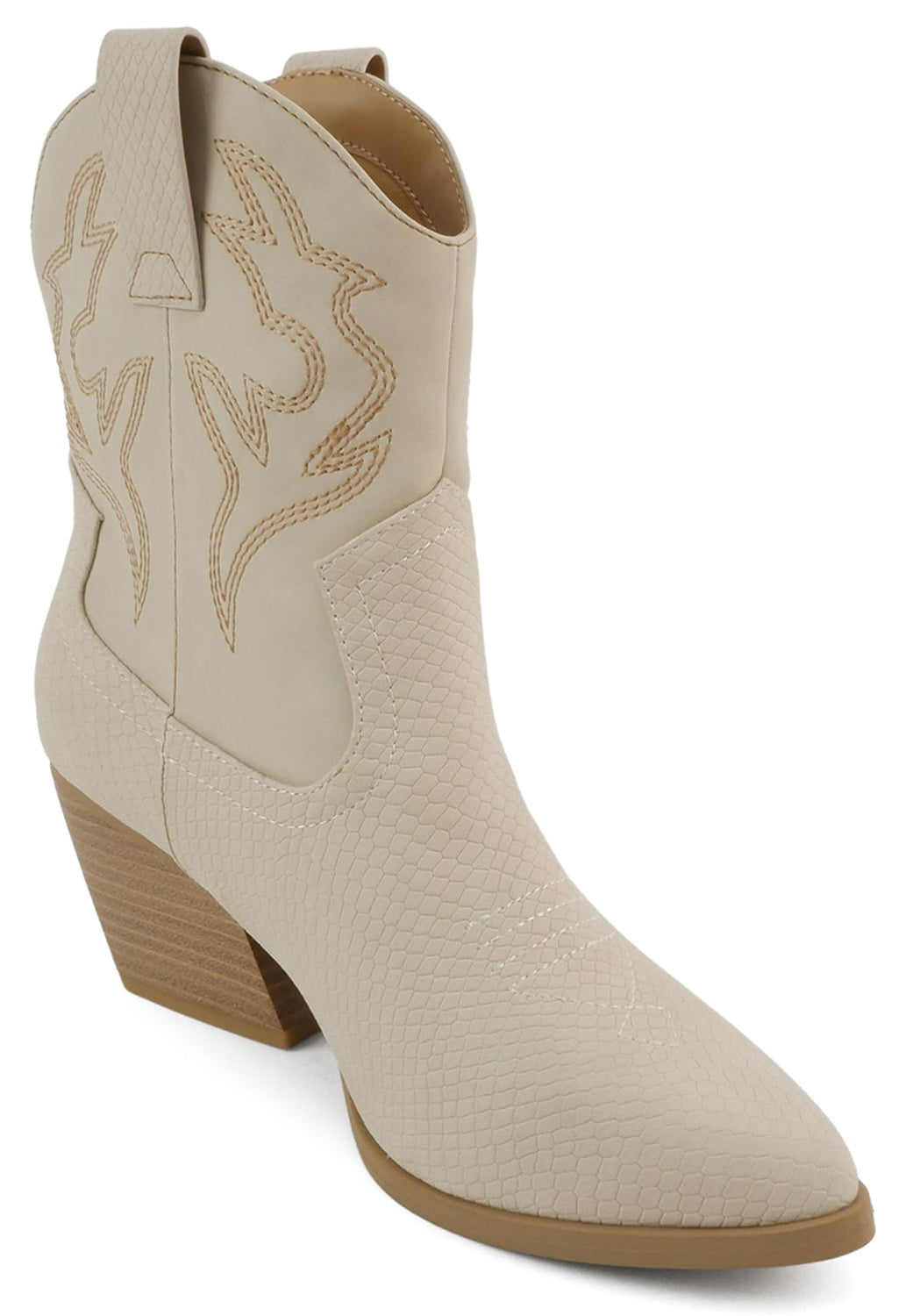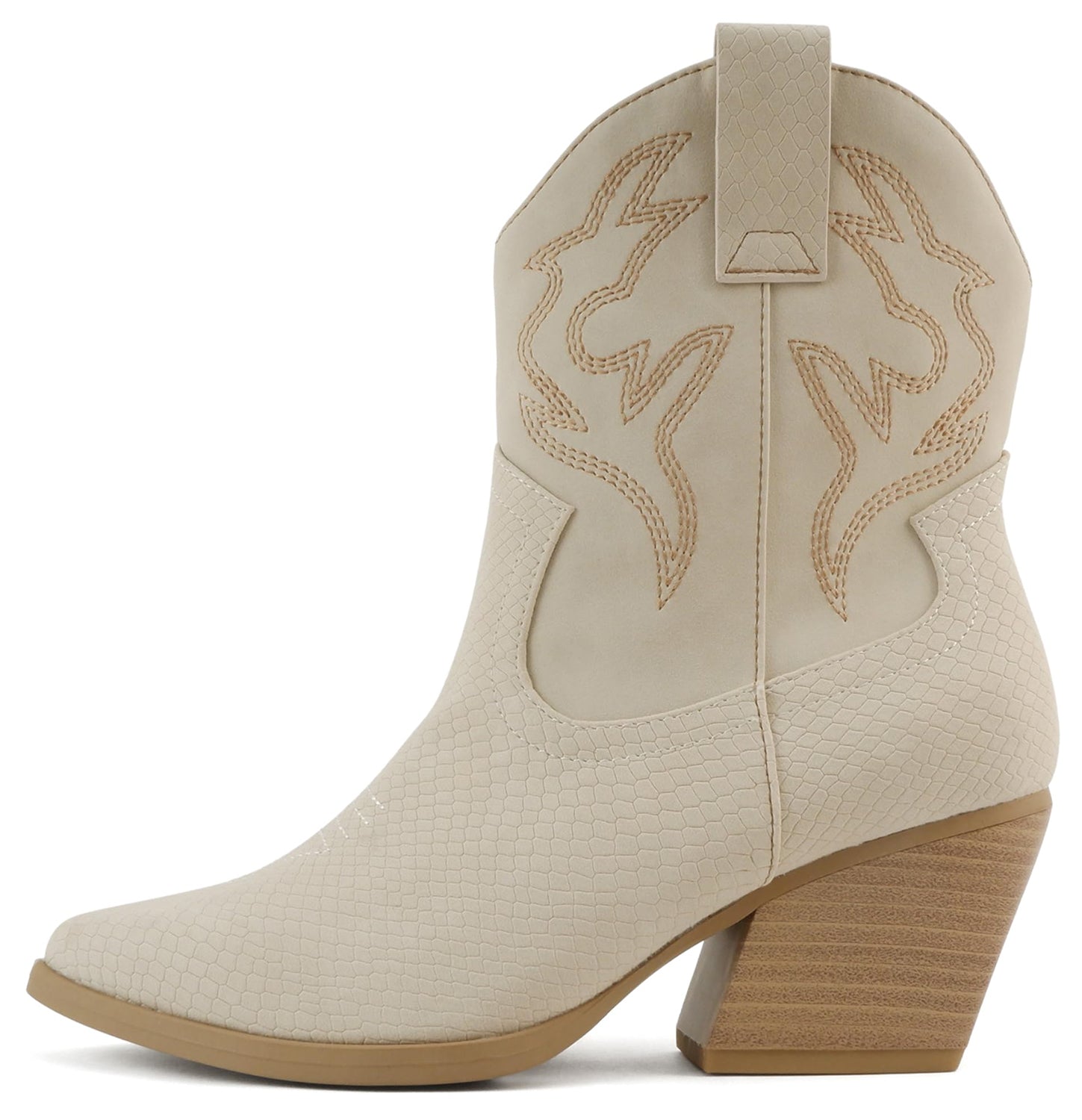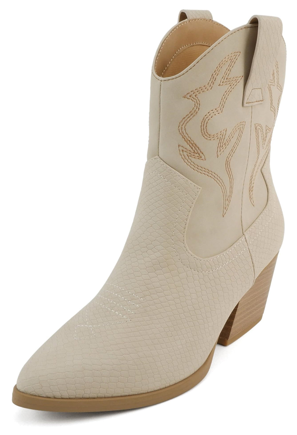 - Soda Women Cowgirl Cowboy Western Stitched High Top Ankle Boots Pointy Toe Short Booties BLAZING-S
