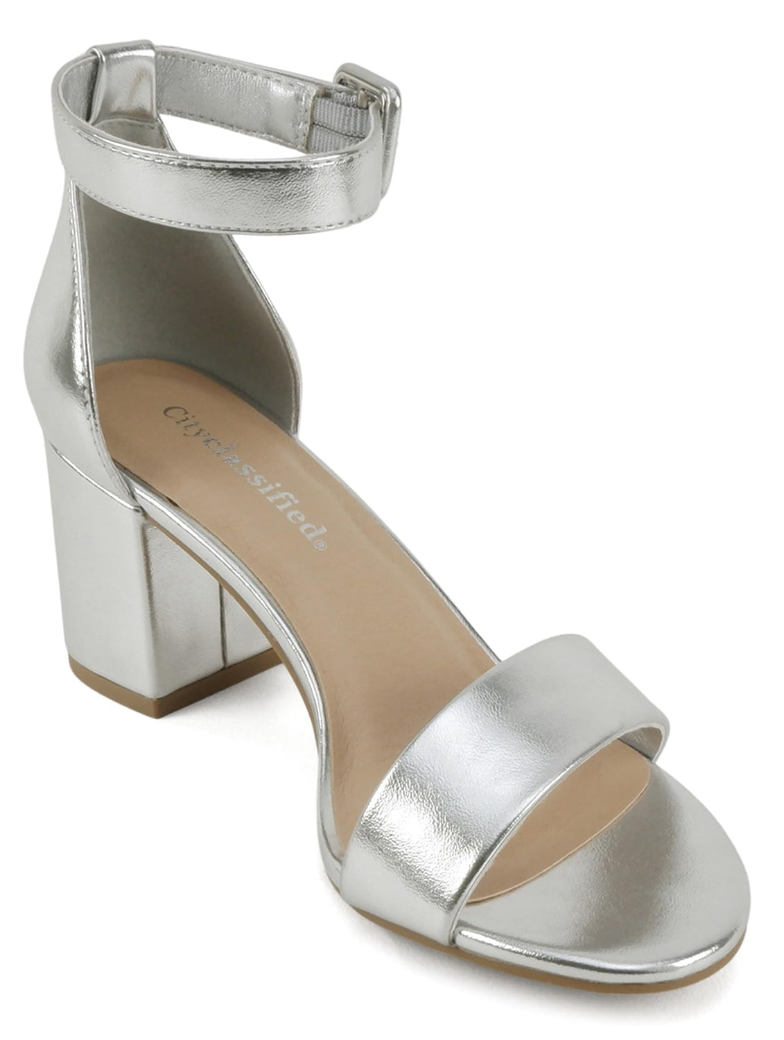 These fun and fashionable CAKE-S from CityClassified sandals feature a low chunky block heel and open toe design with ankle strap for added flair. Perfect for adding a touch of style to any outfit!