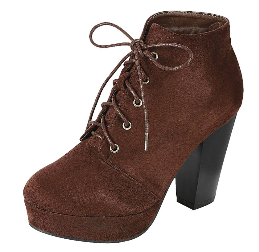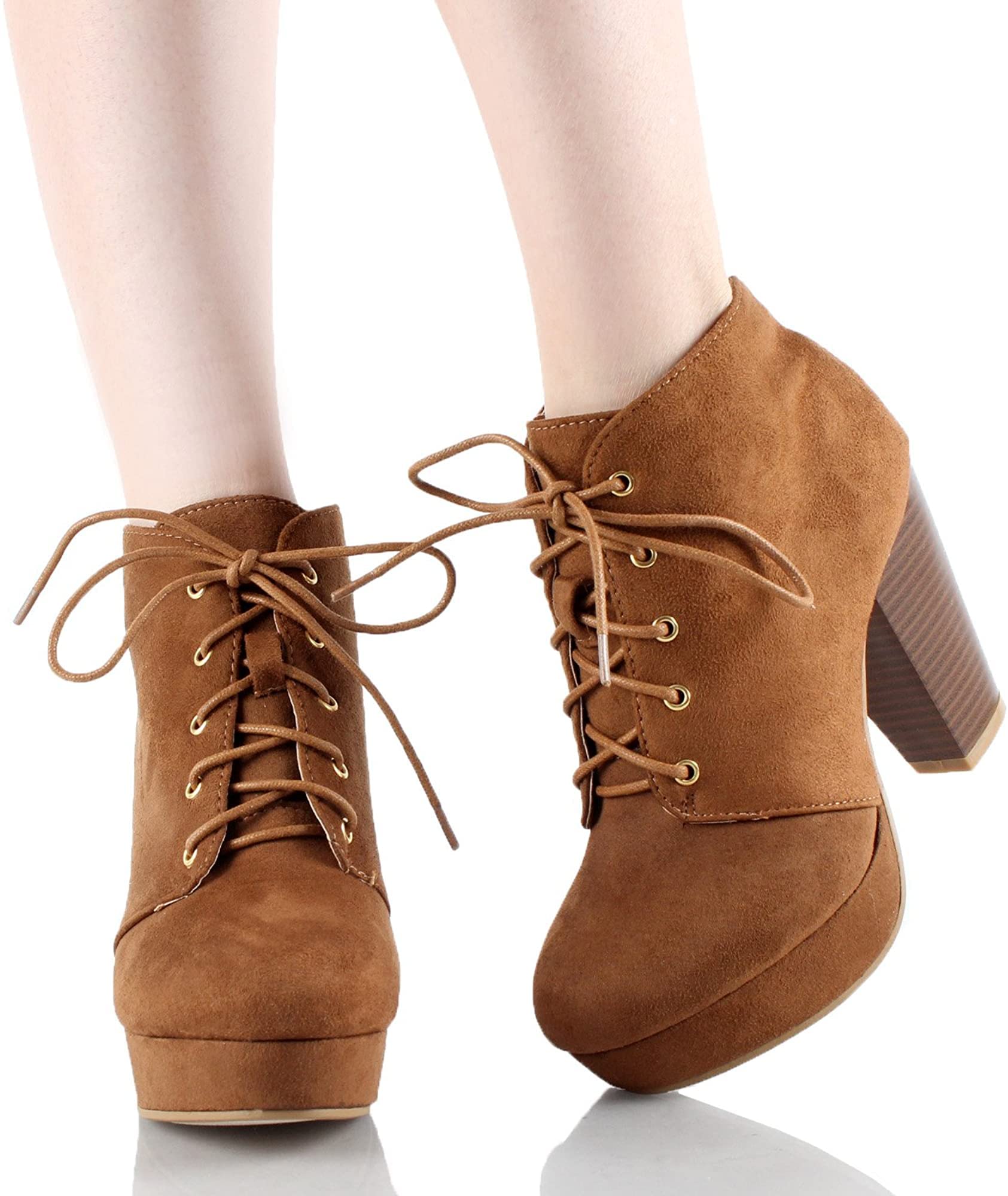 - Forever Women Stacked Chunky Thick High Heels Ankle Boots Hidden Platform Lace Up Booties Camille-86
