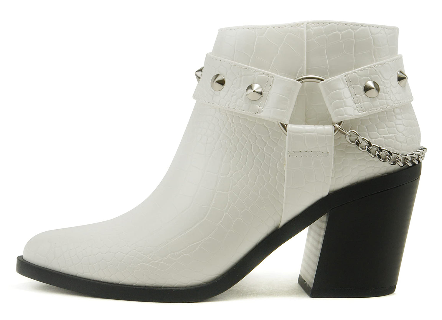 - Soda Women Ankle Boots Side Zipper Back Chain Studded Booties Block Heel Pointy Toe ECOMM-S