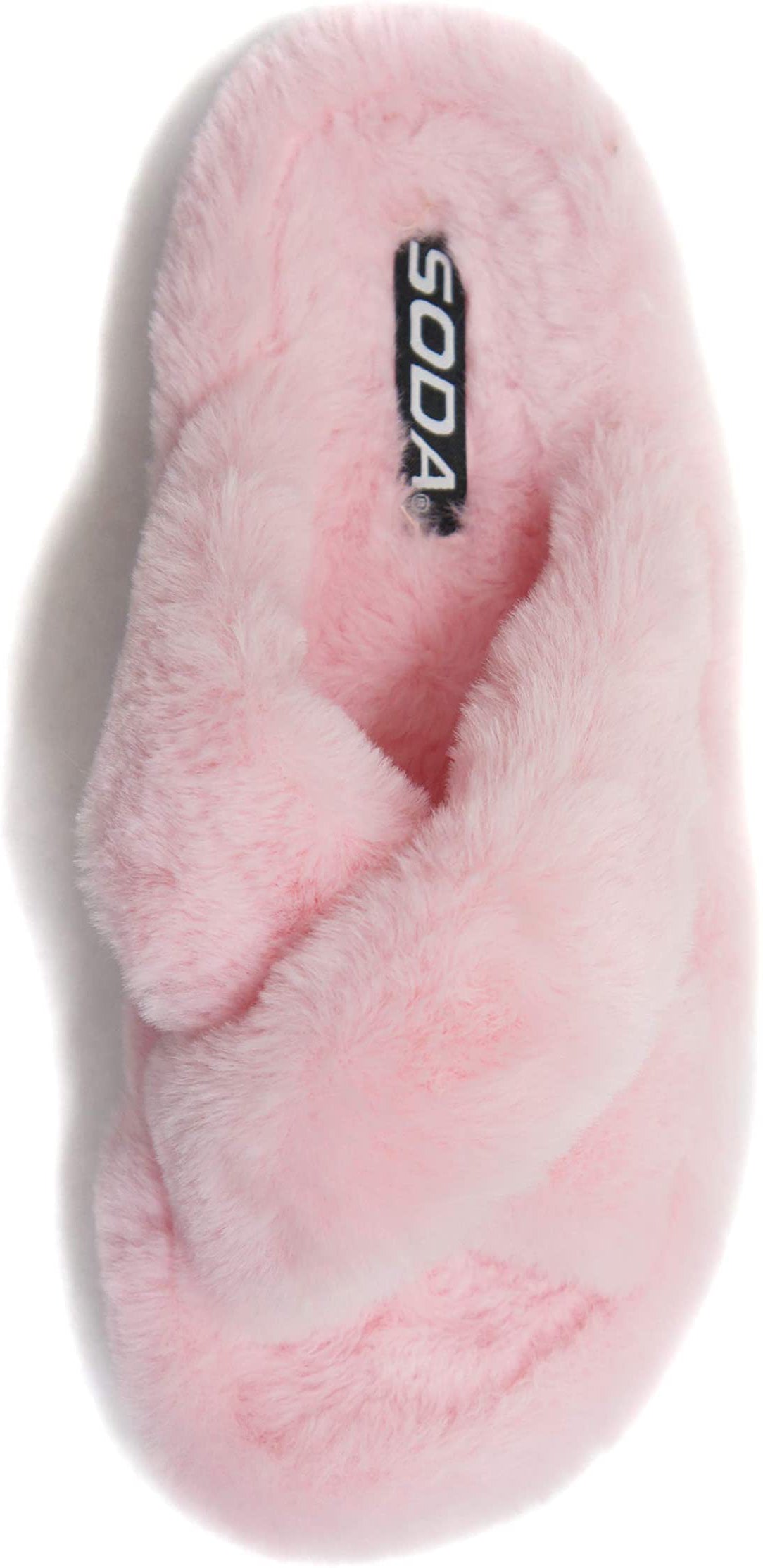 - Soda Women Slip-on Soft Fur Fuzzy Fluffy Sandals Slide Slippers Flip Flops Crisscrossed Band ENGAGE-S