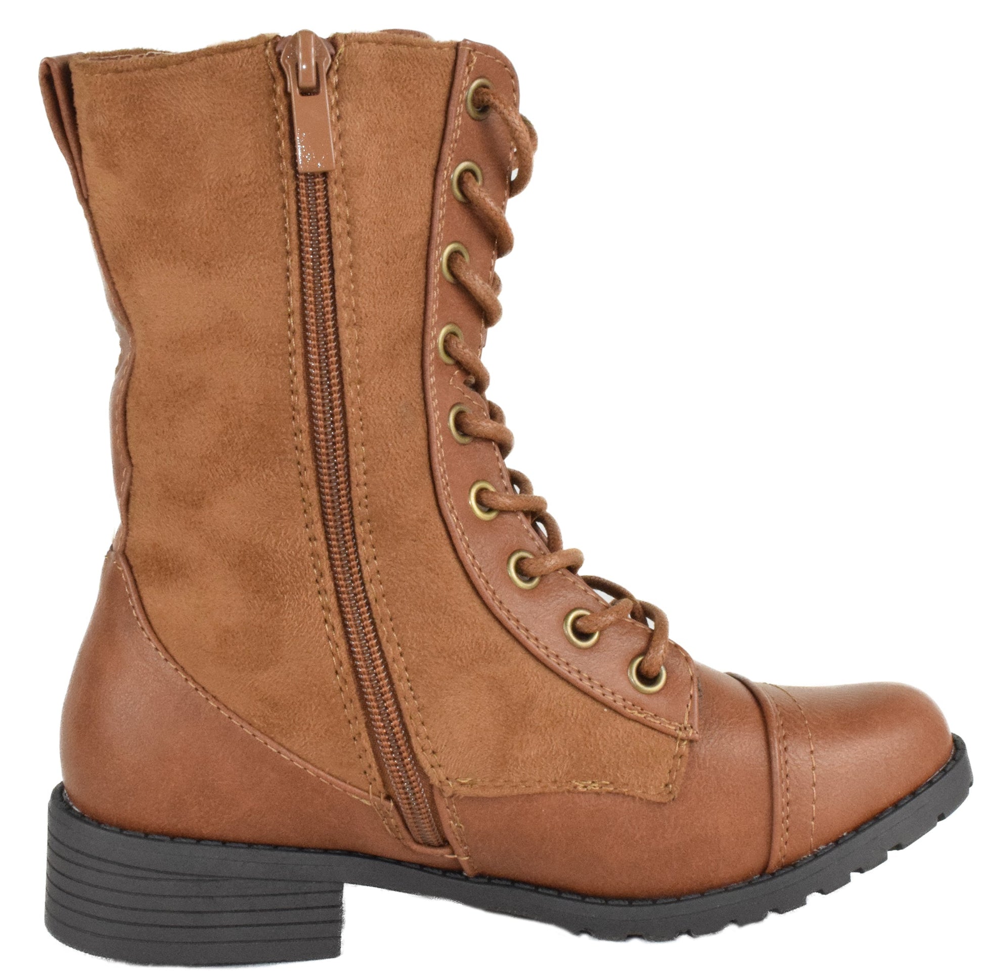 - Forever Women Combat Army Style Boots Lace Up Side Zipper Booties Leather/Suede JALEN-33