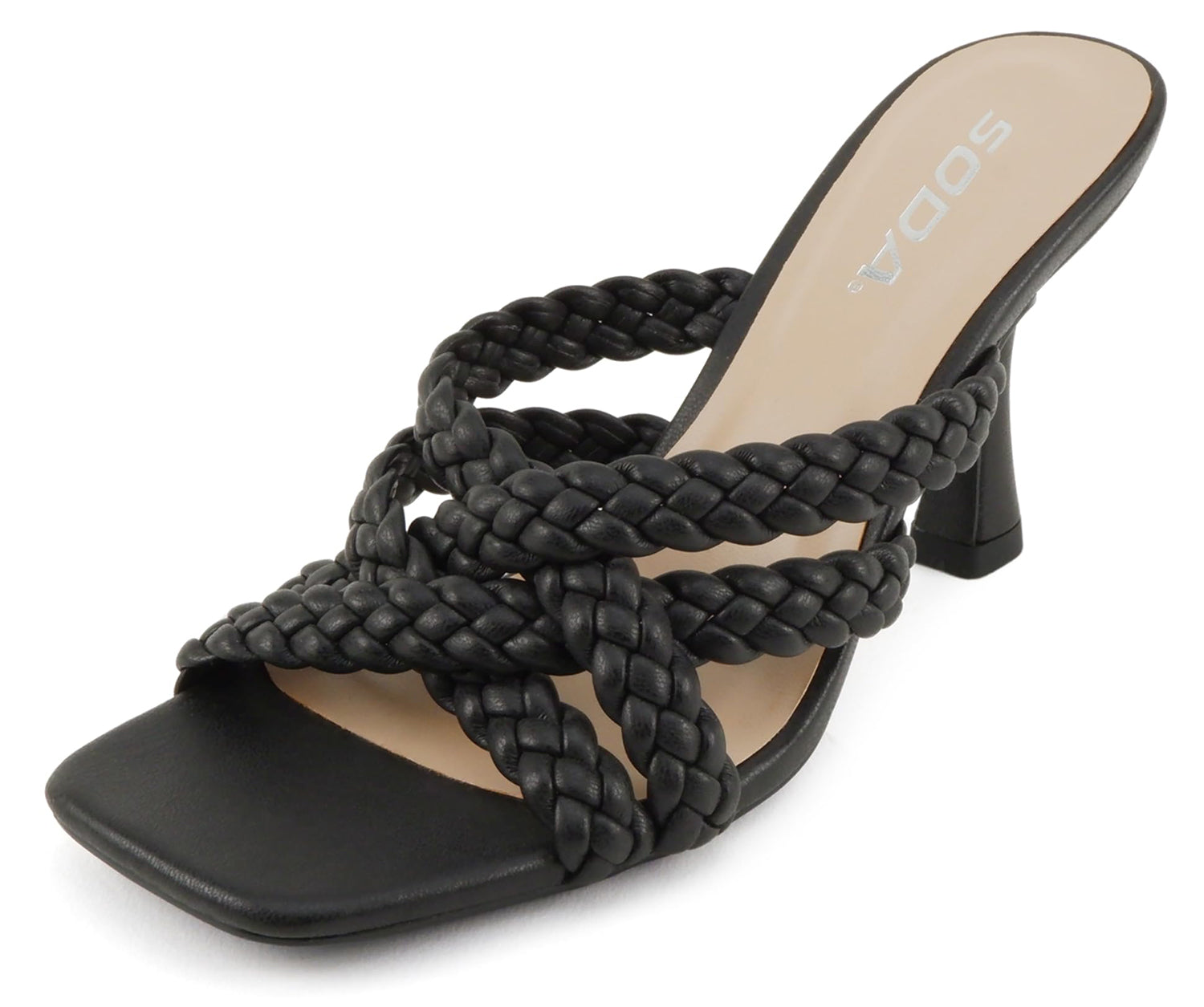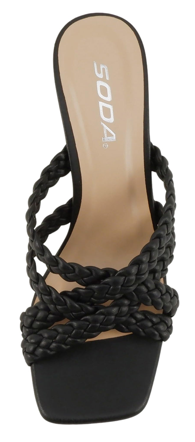 - Soda Shoes Women Stiletto High Heeled Sandal Braided Multi Strap Square Open Toe KELLAN-S