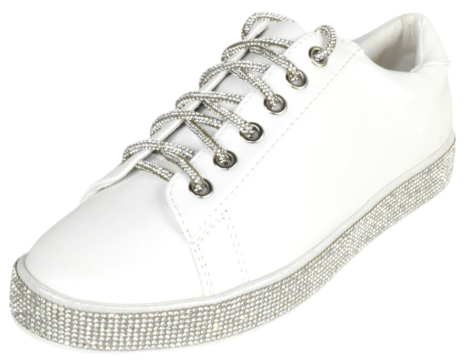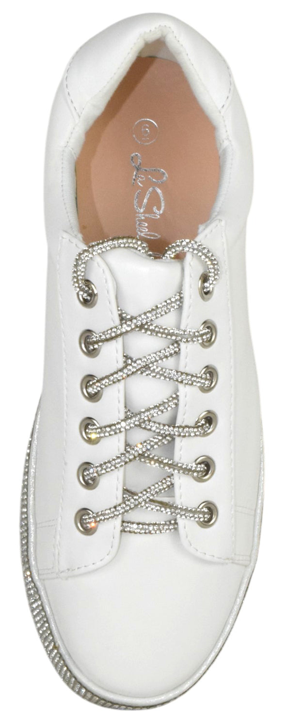 - La Sheelah Shoes Women Flat Fashion Wedding Sneakers Crystals Rhinestone Blingy Lace Up SCOUT-24