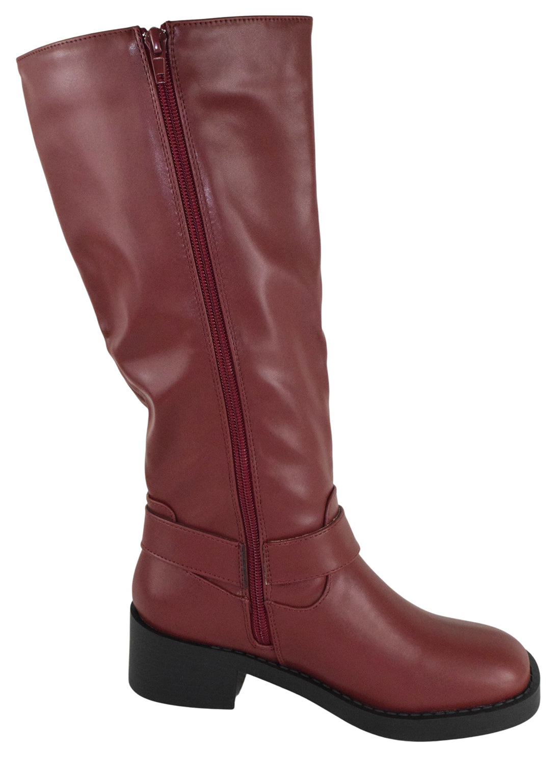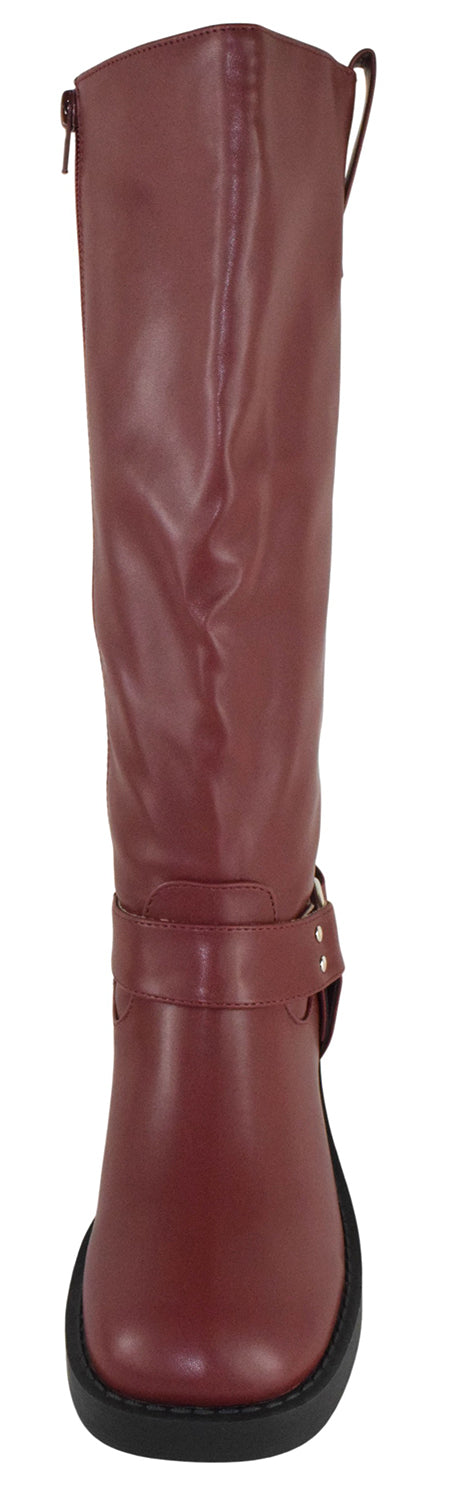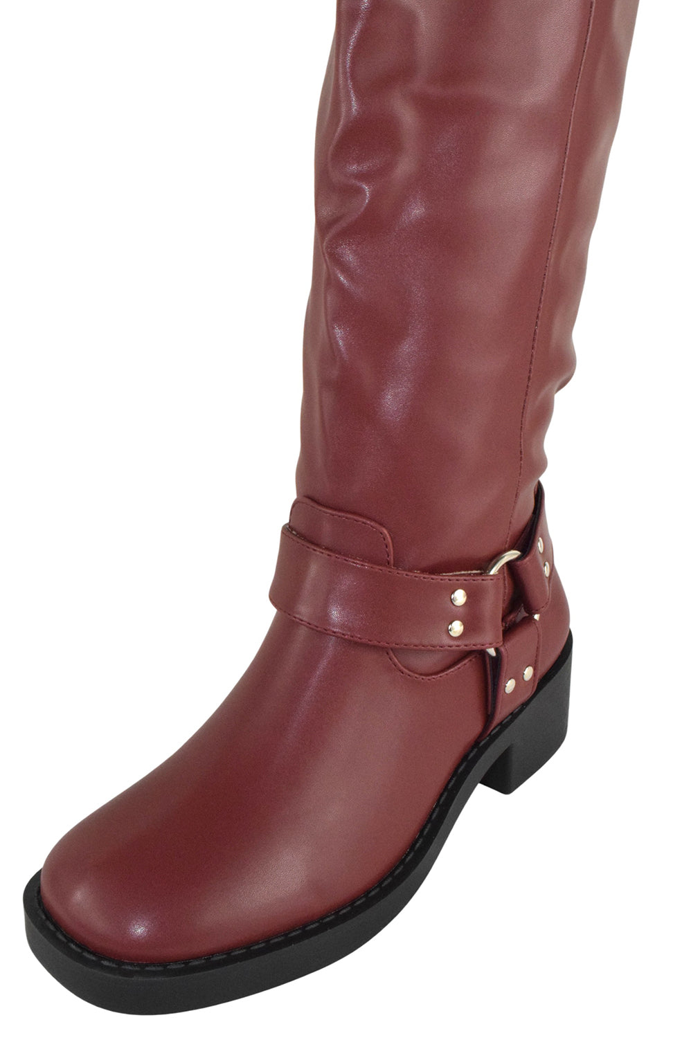 - Berness Women Knee High Boots Buckle Strap Riding Side Zippers Short Block Heel SPENCER